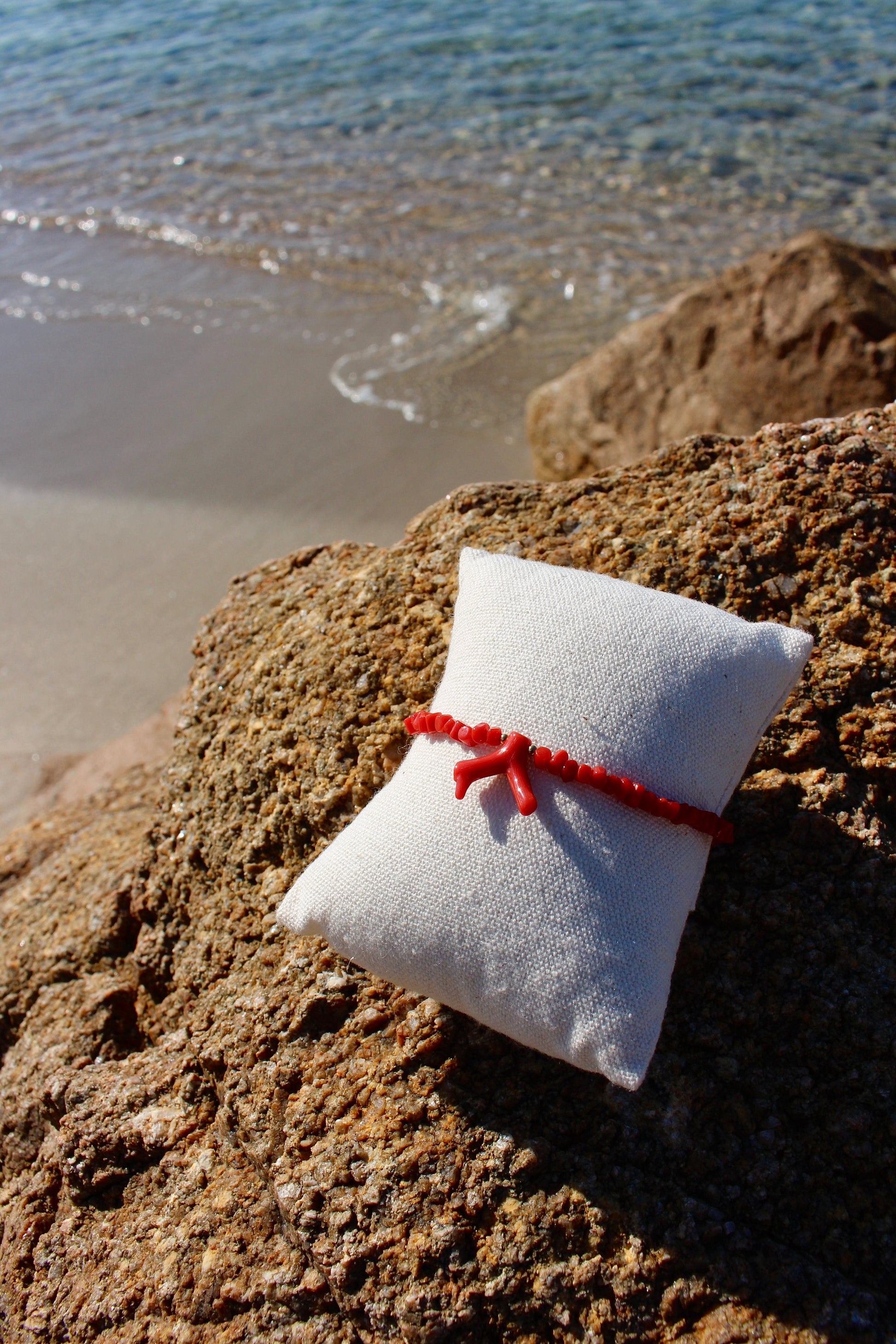 Plongez dans la beauté cristalline de la baie de Piantarella, joyau de Bonifacio, avec ce bracelet en corail véritable de Corse.